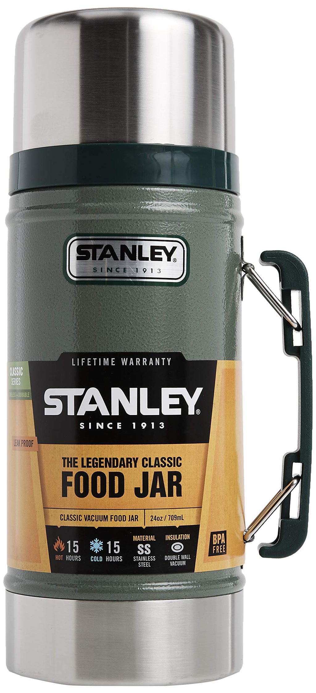 - HIGH-QUALITY STAINLESS STEEL: The Stanley food jar is manufactured with high-quality 18/8 Stainless steel, and is BPA-free. Our food jar is not only safe to use, incorporating high-quality material build, but also maintains its temperature regulating properties for a long time. Whether you travel a lot, or are concerned with food hygiene, Stanley's classic food jar is the right option for you. It is perfect for camping, fishing, hiking or wherever your work or adventure takes you