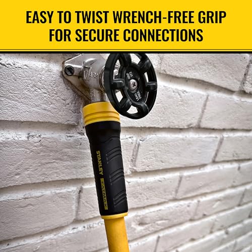 Details: The Stanley FATMAX Professional Grade Water Hose features advanced technologies to make your work outdoors stress-free. The Polyfusion Technology® combines polyurethane and PVC, making the hose lightweight and easy to work with, while the AntiKink® technology provides extreme elasticity, to keep kinking at a minimum. Wrench-free anodized aluminum crush-resistant couplings have heavy-duty, easy-to-grip collars at both ends to make installation easy. This hose is scratch- and abrasion-resistant and supplies up to 500 PSI burst strength.
