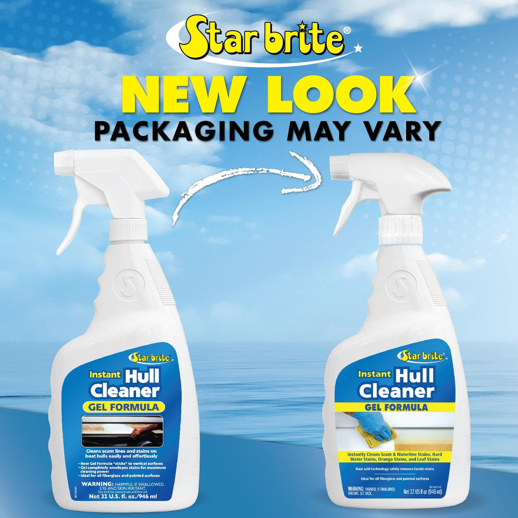 Details: Introducing the STAR BRITE Instant Hull Cleaner, your ultimate solution for a spotless boat. This 32 Oz Gel Spray Formula is specifically designed to cling to vertical surfaces, ensuring maximum cleaning power. It effortlessly removes stubborn stains from boat hulls, fiberglass, plastic, and painted surfaces. Unlike other cleaners, our formula features a naturally powerful oxalic acid formula, much more user-friendly than harsher hydrochloric or phosphoric acid formulas. It's perfect for tackling the toughest stains, including rust, dried fish blood, and leaf stains. For best results, use when the temperature is over 50°F. After cleaning, apply any of STAR BRITE’s Marine Polishes to shine and protect your newly cleaned hull. Whether you're dealing with a boat scum line, or hull stains, our cleaner is your go-to solution. It's the best hull cleaner for fiberglass boats, making it a must-have in your boat cleaning supplies.