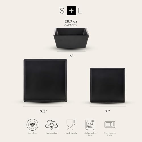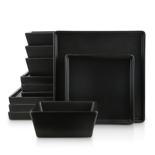 - MINIMALIST DESIGN- The Grace dinnerware is a casual-meets-formal collection featuring a low profile square design on each stoneware plate and bowl. The sharp edges and contemporary rimmed lip are sleek, elegant, and edgy. This set is perfect for anyone looking for unique dishware.
