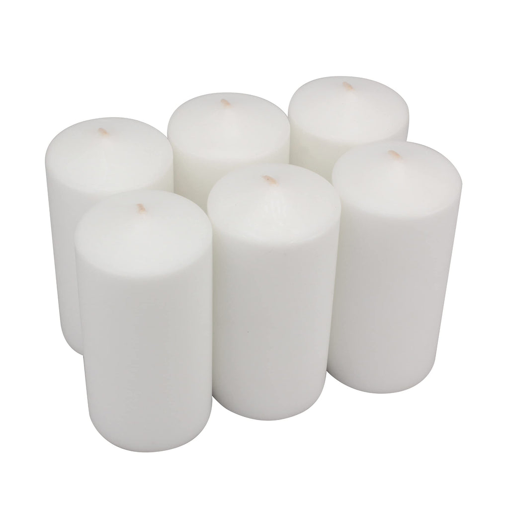 Details: Brighten up your home with Stonebriar's 6 pack tall 3 x 6 inch 65 hour long burning unscented white wax pillar candles. These pillar candles are poured with quality paraffin wax and feature an extended burn time of 65 hours. Each candle comes with a lead free and 100% cotton wick for a clean smoke-free burn. Pillar candles can be used with any decor whether it be a beautiful centerpiece for the holidays, an upscale romantic restaurant setting, unity candles for a wedding, or a relaxing spa atmosphere. Candle set is also great to keep handy as emergency survival candles for power failures. Stonebriar round pillar candles measure 3 inches by 6 inches and are the perfect size for large and medium candle lanterns, decorative centerpieces, fireplace and mantel decoration, or simply to enhance any table top in your home.