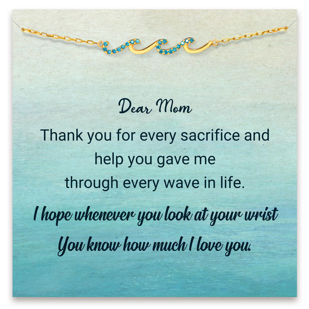 - CARD MESSAGE: "Dear Mom, Thank you for every sacrifirce and help you gave me through every wave in life I hope whenever you look at your wrist you know how much I love you." This 925 sterling silver bracelet is the perfect gift for any mom, bonus mom or stepmom, symbolizing your deep appreciation and love.