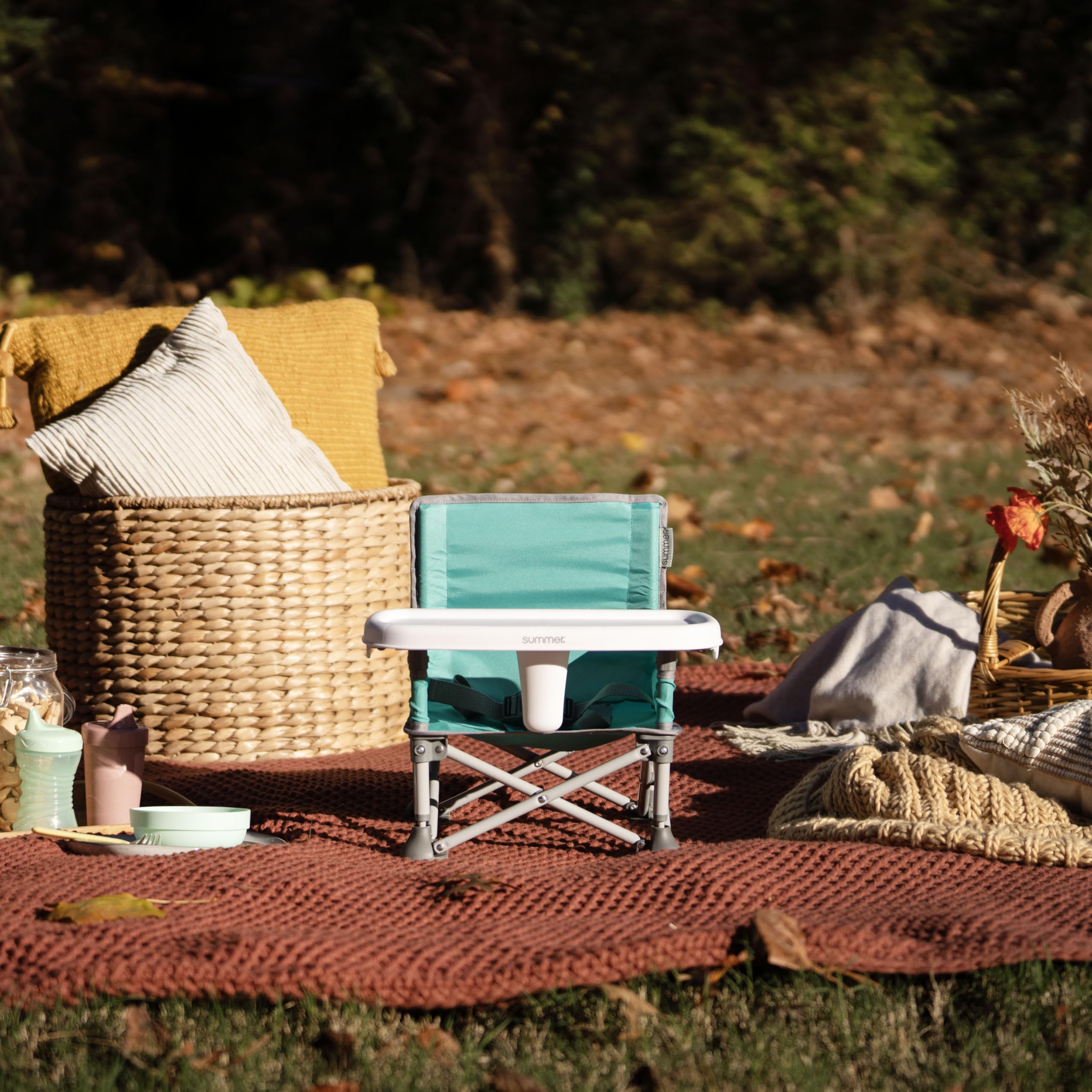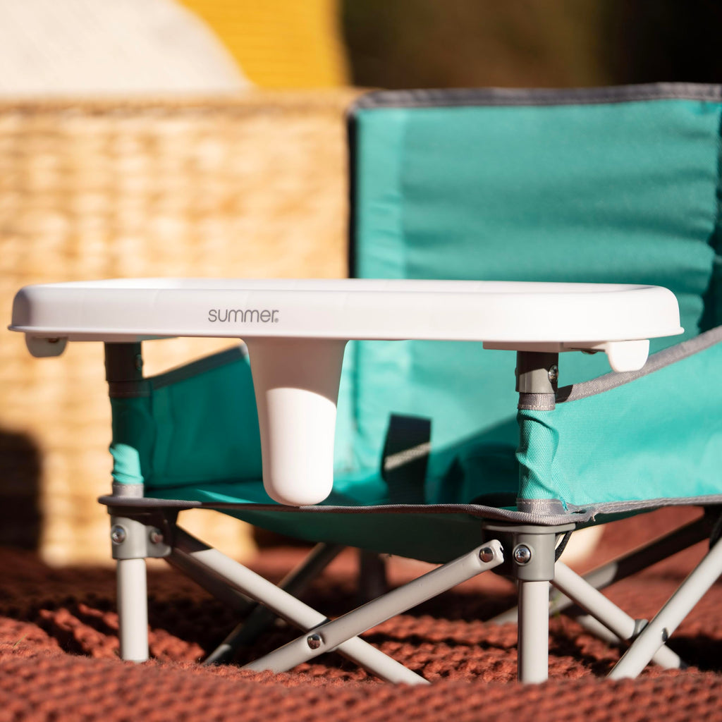 Details: The original Summer Pop 'N Sit Portable Booster is the ultimate go & grow seat, with over 2 million sold worldwide! This #1 Booster Seat* has 3 modes of use: floor seat, feeding seat with removable tray, and toddler booster. For babies, attach to an adult chair using the included straps and BPA free tray to create a portable chair top high chair. For toddlers, use the seat as a booster that can pull up to the table by removing the tray. In floor mode, you can use the Pop ‘N Sit whenever you need an extra seat - picnics, sporting events, or right at home! The rear storage pocket holds your daily essentials. Folds compactly when not in use and includes a carrying bag with shoulder strap. This seat is a new parent must-have that requires no tools for assembly. Dishwasher safe tray. Seat and straps wipe clean with a damp cloth and mild soap. Folded dimensions: 15 x 13.5 x 14.75” or 5 x 15”. Made for 6 months to 3 years old or up to 37 pounds. Third party safety tested and approved. (*Circana, Retail Tracking Service, U.S., Highchairs-Boosters, dollar sales, Jan-Nov 2023 combined)