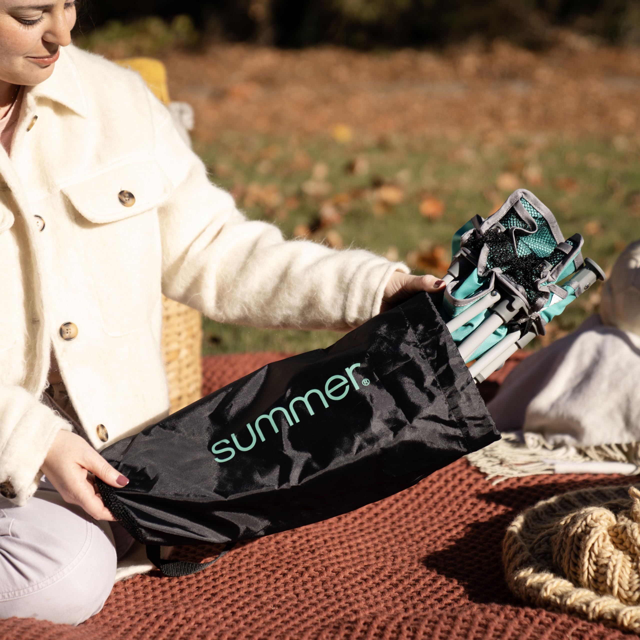 - Safe for indoor and outdoor use. Pull up a seat for park picnics, camping trips, and visits to grandma’s house; includes a carrying bag with shoulder strap to bring along on all your adventures