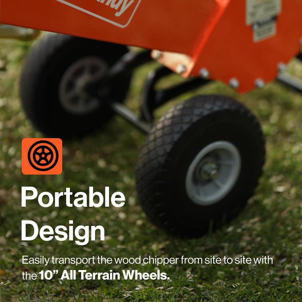 - EFFICIENT PERFORMANCE - Efficient Mini Wood Chipper Shredder Mulcher with 15:1 Reduction Ratio. Large Extended Feeding Chute handles up to 3" MAX branches, limbs and debris for high volume chipping, shredding and mulching.