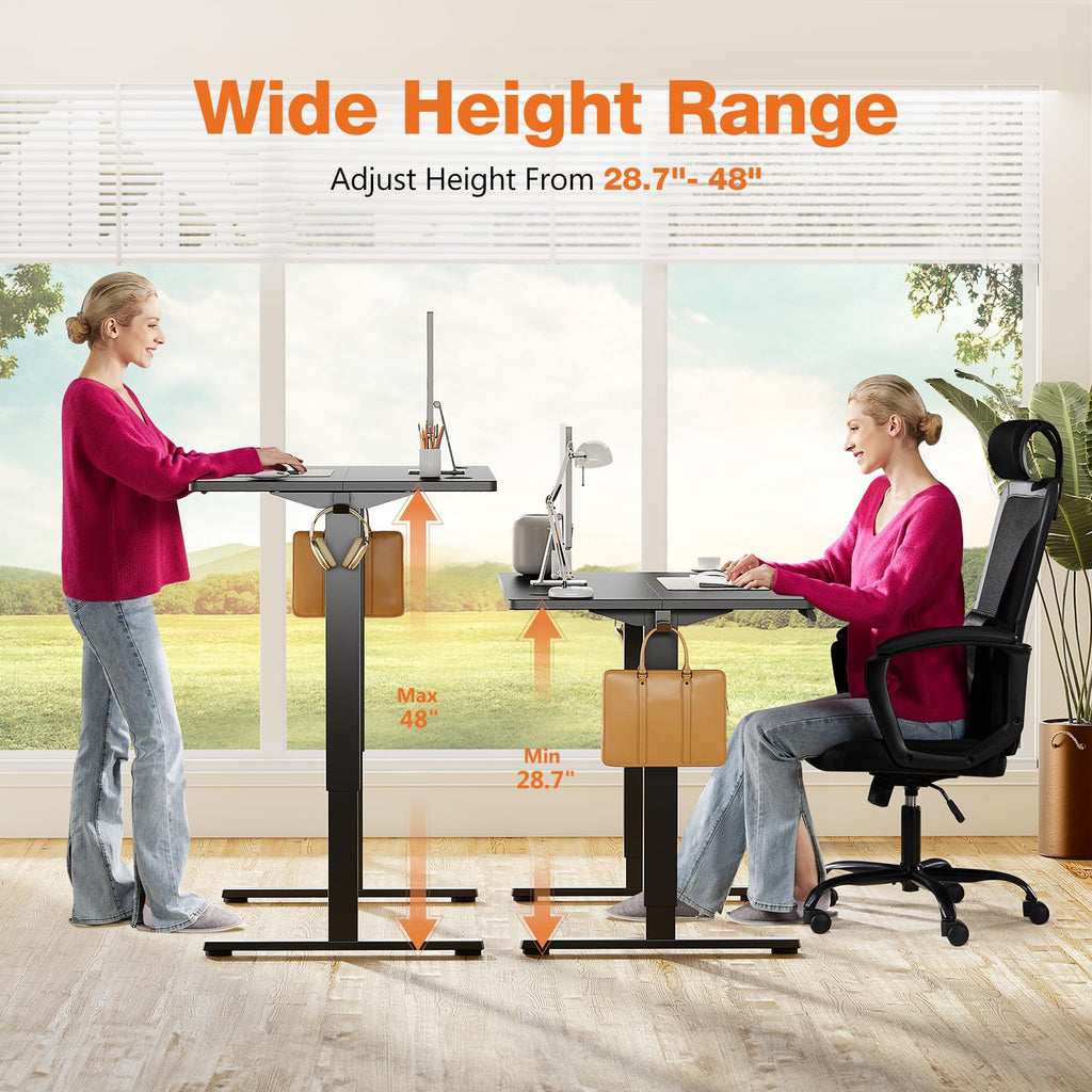 - 【Electric Height Adjustment】Enjoy the health benefits of a standing desk adjusable height, with 3 memory presets height settings for quick and easy transitions and a height range of 28.7"–46.5". Electric desk has reliable motor with low noise(under 50 dB) while running.