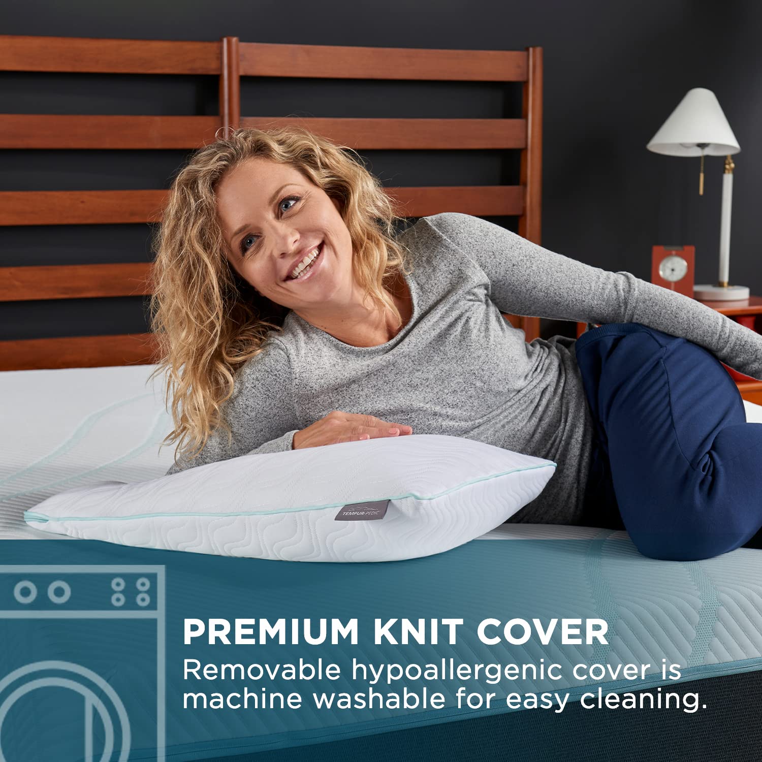 Details: Just like your mattress, your memory foam pillow should be precisely engineered to suit your individual needs. We developed our TEMPUR-Cloud line to give you a range of choices in feel and support for the ultimate in personalized comfort. This extra-soft, low profile queen TEMPUR-Pedic pillow is designed to comfort, support, and conform to your body throughout the night. Unique micro-cushions within our TEMPUR material Cloud to your head, neck, and shoulders to relieve pressure and promote relaxation unlike any other memory foam pillow. Enjoy personalized support and alignment night after night with durable TEMPUR material that returns to shape after every use. Includes removable, washable knit cover. Breathable, high-stretch performance fabric with cool-to-touch features. The TEMPUR-Cloud Pro pillow collection is made with different layers of exclusive TEMPUR Material so that each pillow adapts to your unique body shape and body temperature.Easy care: Convenient removable and washable cover