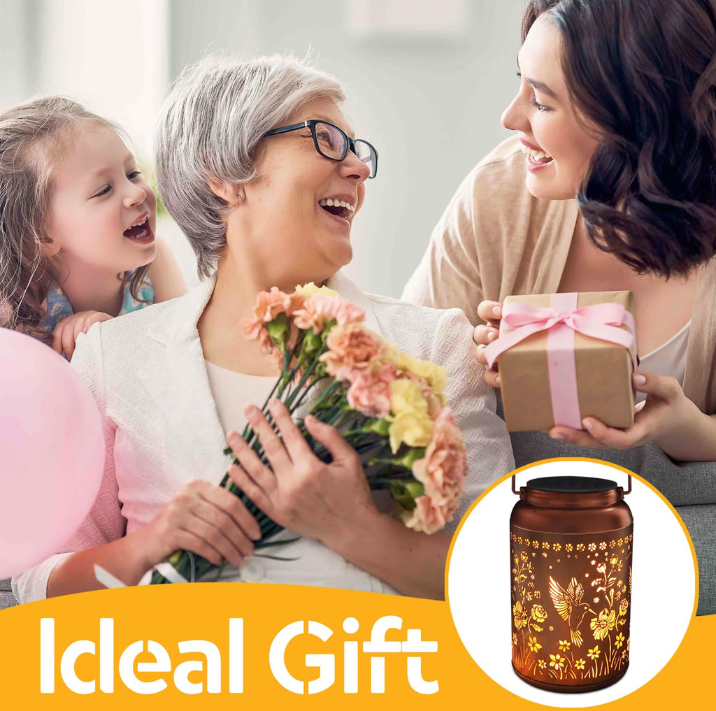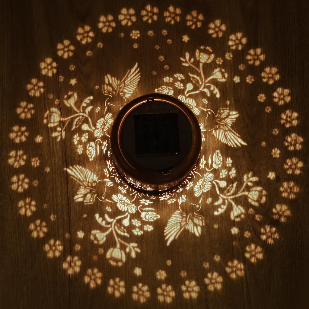 - Graceful Decorative Design:The retro appearance, with gold copper color and hollow out metal veneer, the solar outdoor lanterns casts bright and warm light in darkness, accompanied by gorgeous and graceful hummingbird patterns, adding a beautiful atmosphere to the surrounding environment.