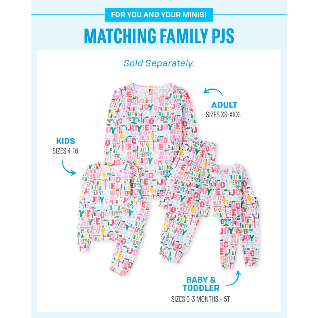 - PAJAMA TOP — Features long sleeves, rib-knit crew neck and allover holiday words print