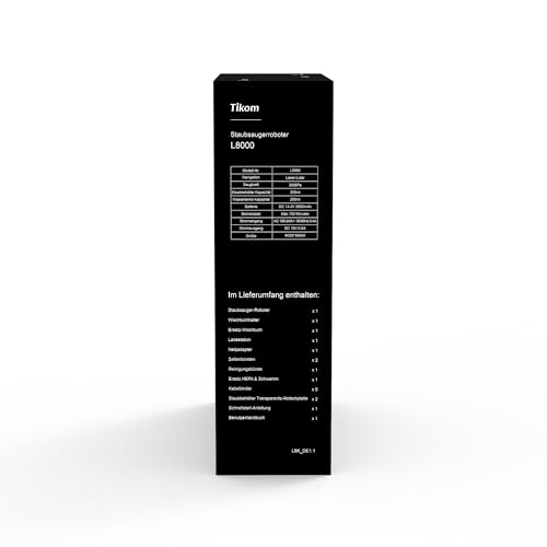 - [3000 Pa Strong Suction]: Tikom L8000 robotic vacuum efficiently picks up debris, pet hair, dust, and so on from the floor surface. It will automatically increase suction to 3000 Pa(Max) on the carpet for a deeper cleaning, suitable for hard floors, tiles, wooden floors, and low-pile carpets