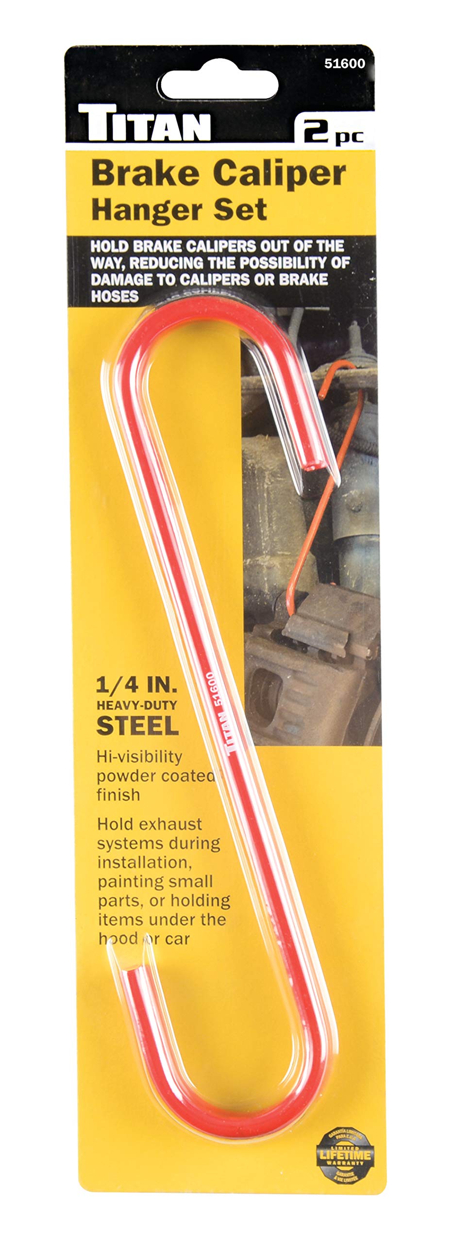 Details: The 2-piece Titan 51600 Brake Caliper Hanger Set features hi-visibility powder coated finish and is constructed of 1/4” heavy duty steel. It securely holds exhaust systems during conditions such as installation, painting of small parts, or holding items under the hood or the car. Perfect for a variety of automotive applications such as brakes, wheel bearings, axle shafts and suspension.