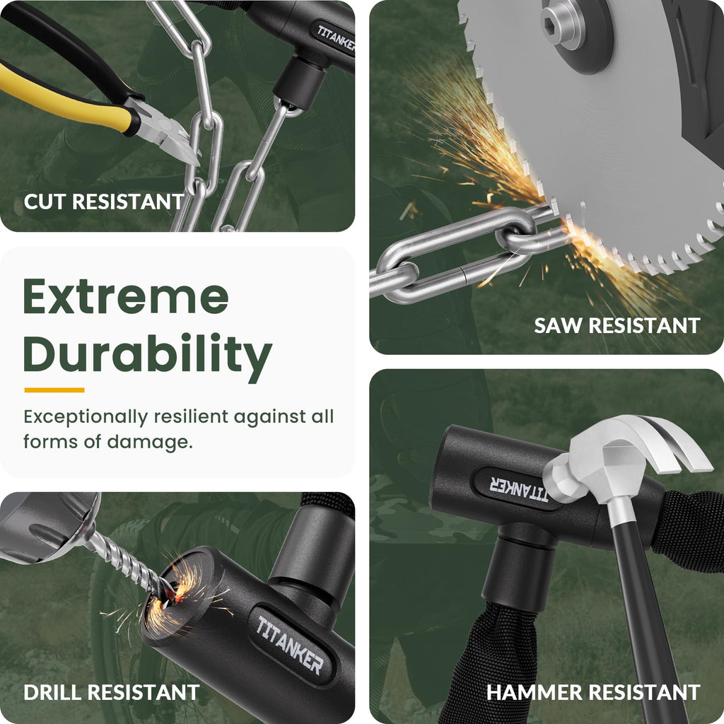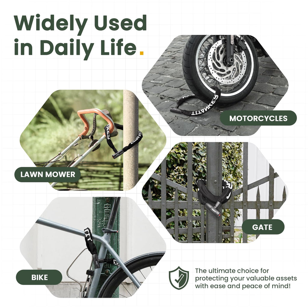 - Secure & portable: Titanker bike chain locks come with 2 keys. You can take one of the keys for daily use while leaving another at home in case you accidentally lose one. Two Keys offer you convenience.