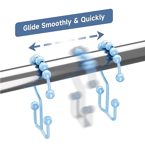 - Double hooks design - The double roller glide shower hooks are strong enough to hold up shower curtain and shower liner.