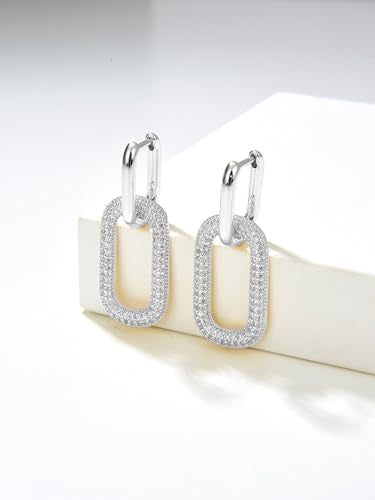 - Paperclip Silver Dangle Hoop Earrings for Women: The mixed textures on these silver link chain earrings for women trendy are sure to be eye-catching. Whether you want to wear it with its paperclip link shaped drop charm or remove them pave charm and simply have the silver hoops, these paperclip huggie dangle earrings are bold and beautiful.