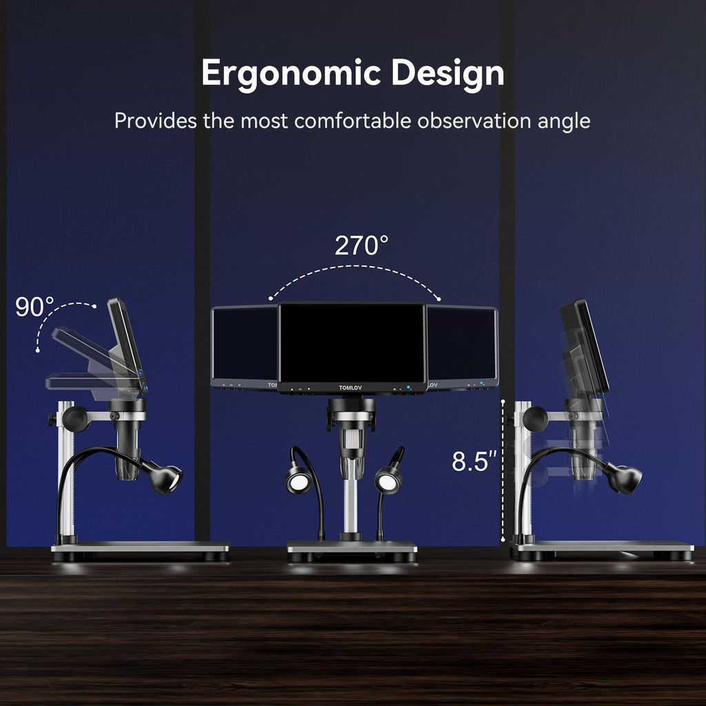 - 7-Inch Rotatable FHD Screen: Equipped with a 12MP ultra-precise focusing camera and 1080P high-definition imaging, this LCD digital microscope captures high-quality images and videos, delivering an incredible microscopic viewing experience. The rotatable (90-degree) screen design improves ergonomics and reduces eye and neck strain