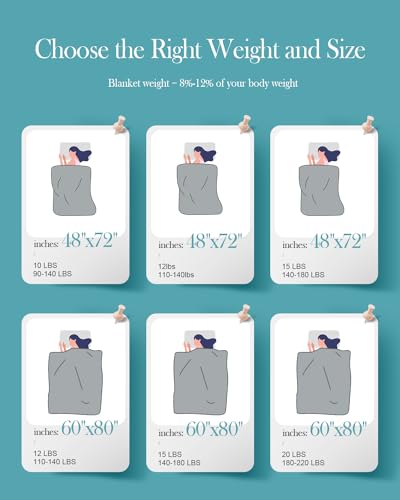 - Recommended Weight: Choose a blanket that is 8%-12% of your body weight for optimal comfort. For first-time users, starting with 8% is advised. We offer a variety of sizes and weights to meet your specific needs, whether for sleeping, napping, or meditating.