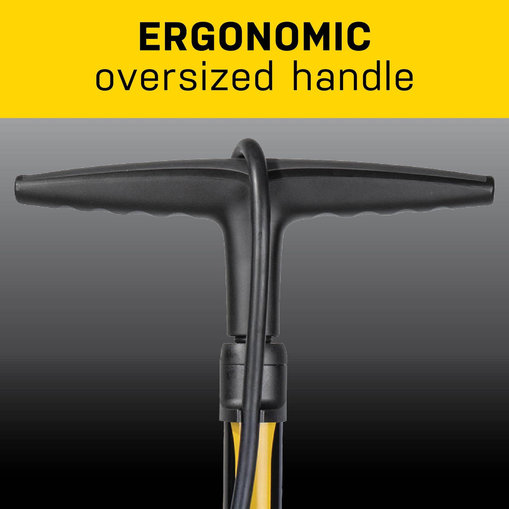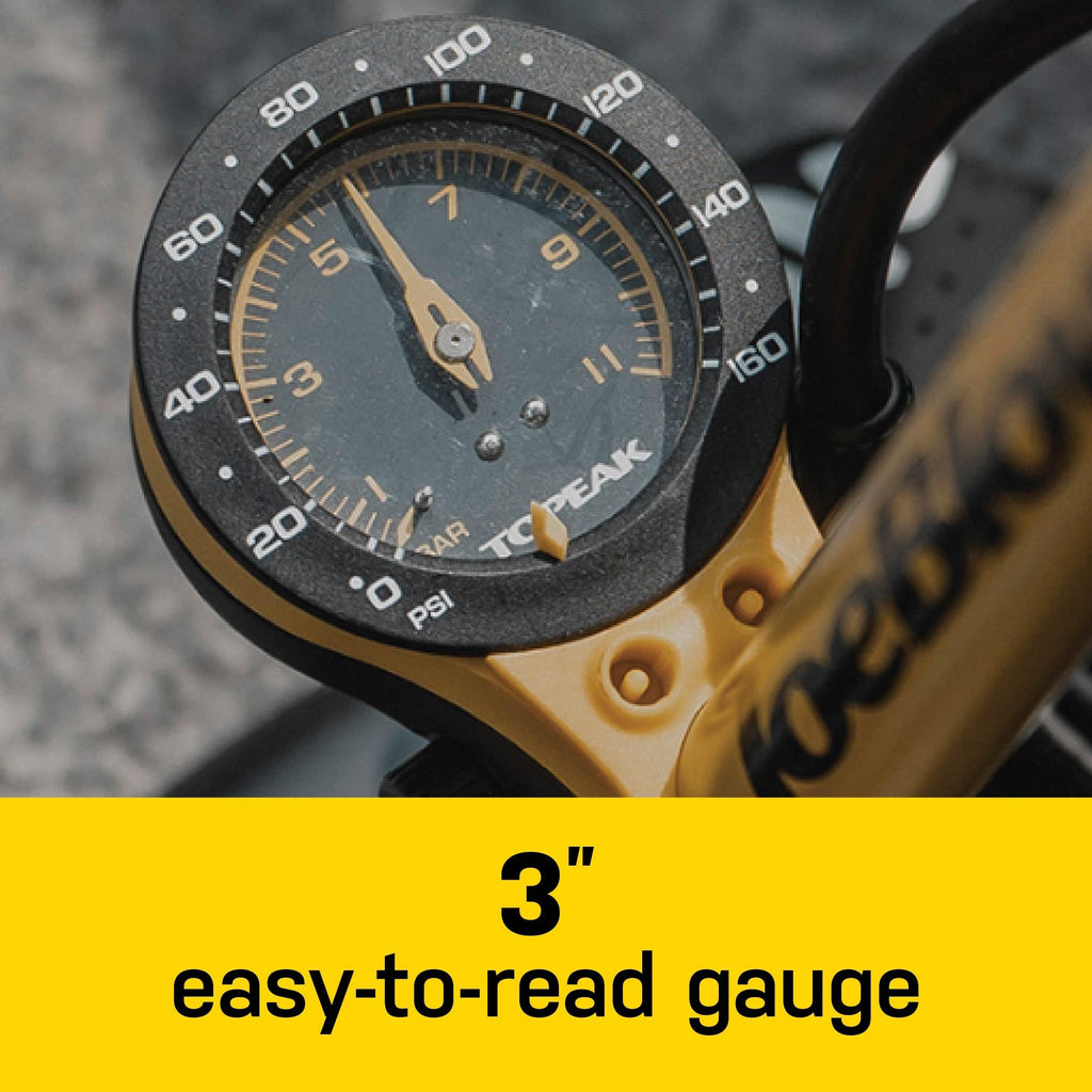 Details: The Topeak JoeBlow Sport III sets the benchmark for floor pump durability and performance. It features an enlarged 3” chronograph-inspired gauge, a new hammer style TwinHead DX pump head, and a durable steel barrel and base. The ergonomic padded handle makes inflating tires easy and comfortable.