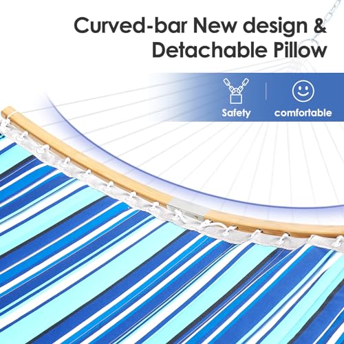 - 【Hammock Curved Stability Redefined】 Revel in the spacious 55-inch hammock bed, a double hammock featuring strategically positioned hanging holes that not only minimize friction but also guarantee hammocks unmatched durability and stability. The Hammock chair with stand unique arc design ensures the stability of the hammock to the greatest extent, Instilling in you unwavering confidence in hammock stability and security, you can rock gently and worry-free.