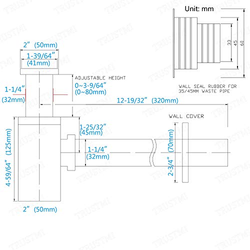 - Standard Inlet Connector, works with 1-1/2 inch pop up drain with or without overflow, also works with 1-1/4 inch tailpiece drain stopper. 5.3~8.5 inch height adjustable. 12 inch Extension Tub which can be cut to fit. Wall seal rubber included