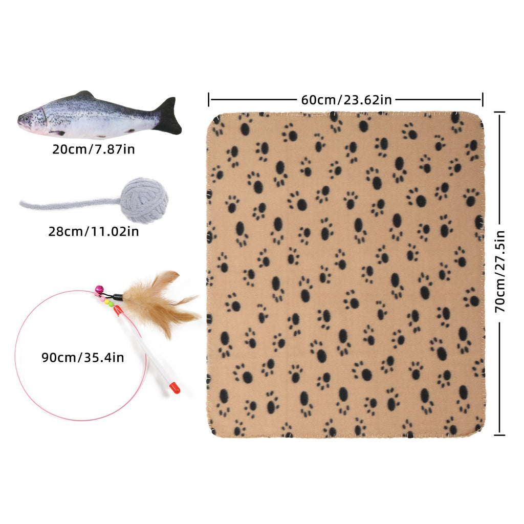 - INTERACTIVE CAT TUNNEL CAT TOY SET: Contains a uniquely designed long cat tunnel, sturdy track spring cat toys, cat teasing sticks, simulated plush fish, wool balls, resting blankets and other elements to create an interesting environment for cats environment
