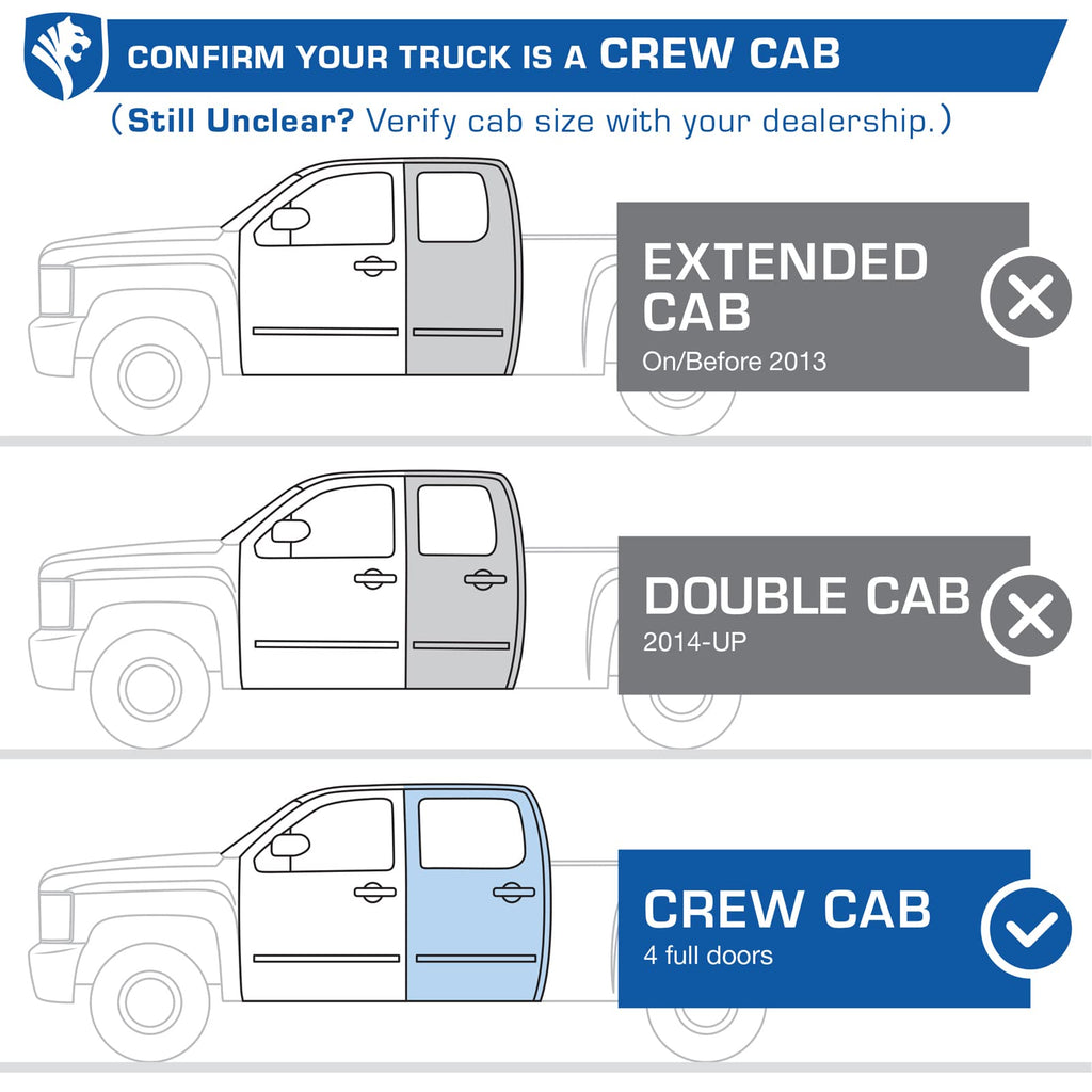 - FITMENT - Compatible with 2019-2024 Chevy Silverado / GMC Sierra 1500; 2020-2024 Chevy Silverado / GMC Sierra 2500 HD 3500 HD; 2022 Chevy Silverado 1500 LTD / GMC Sierra 1500 Limited; Diesel models with DEF tanks | Crew Cab [Cab Size Note: Only fit Crew Cab with 4 full-size doors. (See Image for more info)] | Not compatible for 2019 Silverado Sierra 1500 LD and Limited models