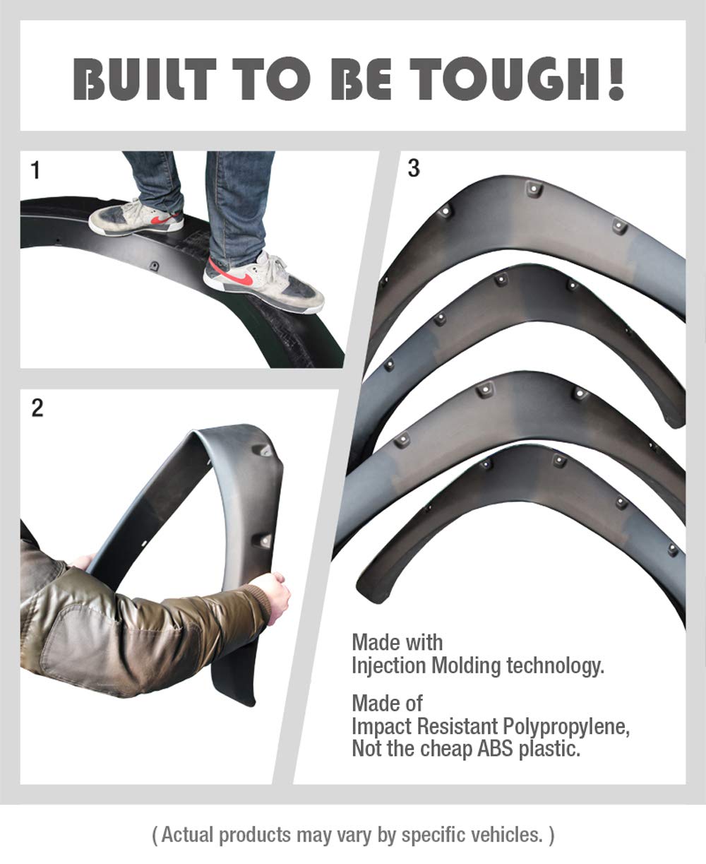 - HEAVY DUTY - Special Injection Molding process ensures enhanced durability, flexibility and strength for these flares to effectively withstand against cracking, warping and chalking offering a superior off-road driving experience.
