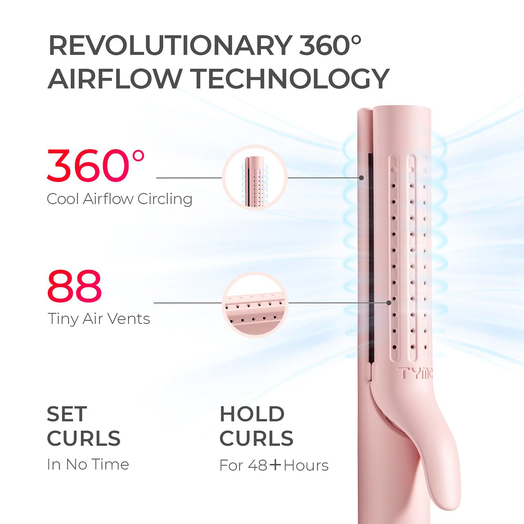 - PROFESSIONAL SALON RESULTS AT HOME - Featuring 360° airflow technology and 88 ionic cool air vents, the anti-scald curling iron heats, curls and cools in a single glide, locking flawless curls & waves for long-lasting glamour. Millions of negative Ions nourish the hair, leaving it with a shiny salon-like finish.
