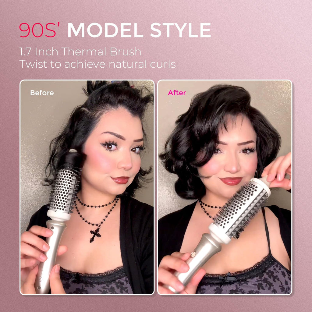 - EFFORTLESS VOLUME, INSTANT BLOWOUT: Skip the hassle of straightening and curling separately. With the 1.7-inch ceramic barrel thermal brush, you can achieve a luxurious, bouncy blowout with just one stroke. TYMO STYLUX heated round brush features dual voltage (100V-240V) for worldwide use and weighs only 0.49 lbs, making it perfect for on-the-go styling. Start your hair transformation journey today!