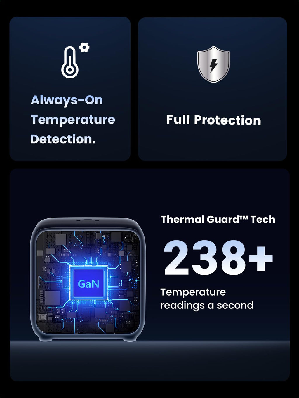 - GaN II Technology: Powered by GaN II chip, this compact 3-sided design is suitable for the home, office, and travel, which makes it perfect for life and work