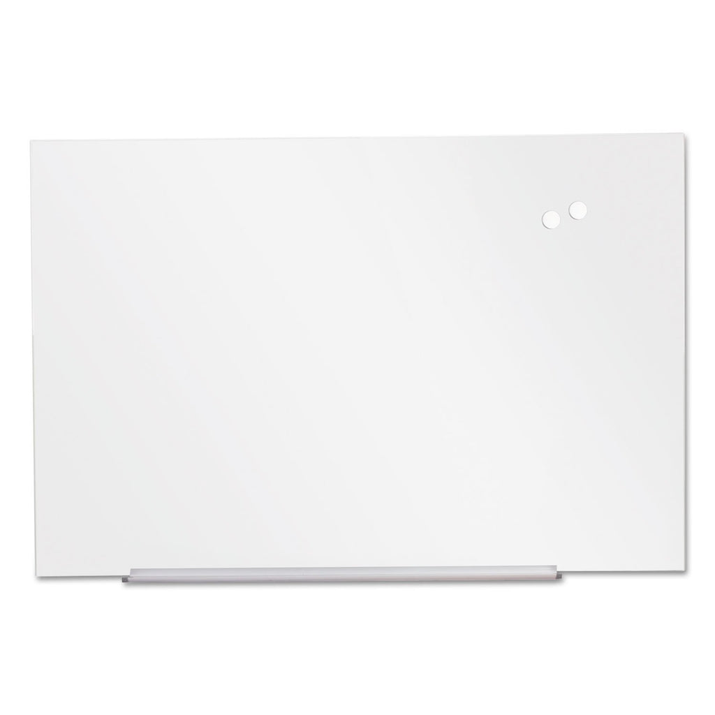 Details: A premium solution for the contemporary office or conference room, this frameless board features a minimalistic, infinity-edge design that makes it appear as though the board is floating along your wall—an effect that's both retro-futuristic and thoroughly modern. Its frosted, tempered-glass face lends a gem-like quality to dry-erase ink that really makes colors pop, while delivering the stain-, ghost-, scratch- and dent-proof performance you'd expect. A ferrous core enables the use of surface magnets, which may help you add a bit of variety to your presentations. Board mounts horizontally.