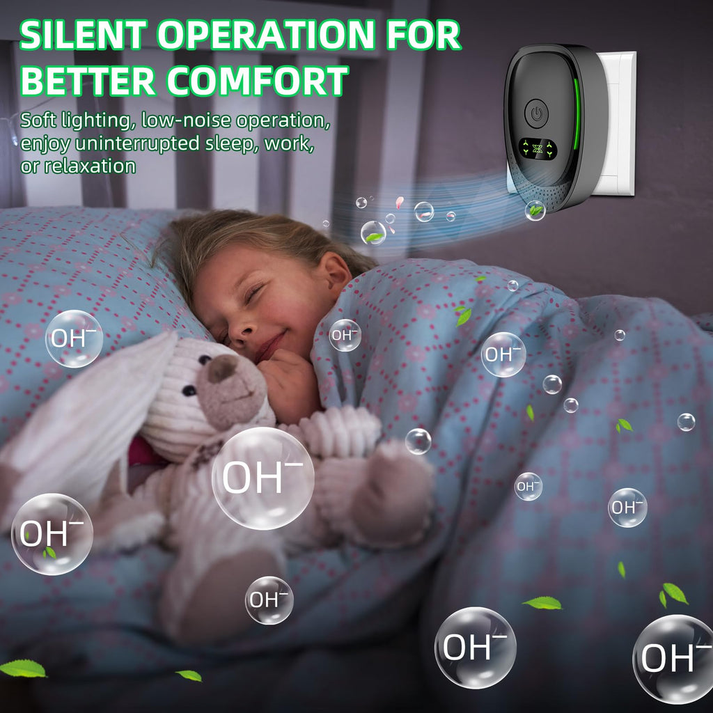 - 🌲 Breathe Forest-Fresh Air at Home: Our plug in air purifiers releases a high concentration of negative ions, transforming your indoor air into the crisp, clean freshness of a forest. These ions not only purify the air but also boost your mood and overall well-being, bringing nature’s vitality right into your living space.
