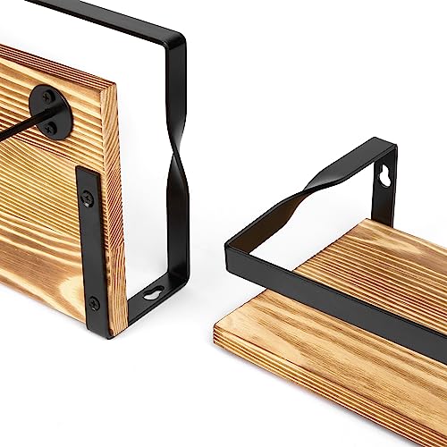 - 【Sturdy Bathroom Shelves】: Make of high-quality wood and thickened metal, wood shelves sturdy enough to bear 21/19/16.5lb. The torched finish wood and all well-finished edges make it used last longer and safer.