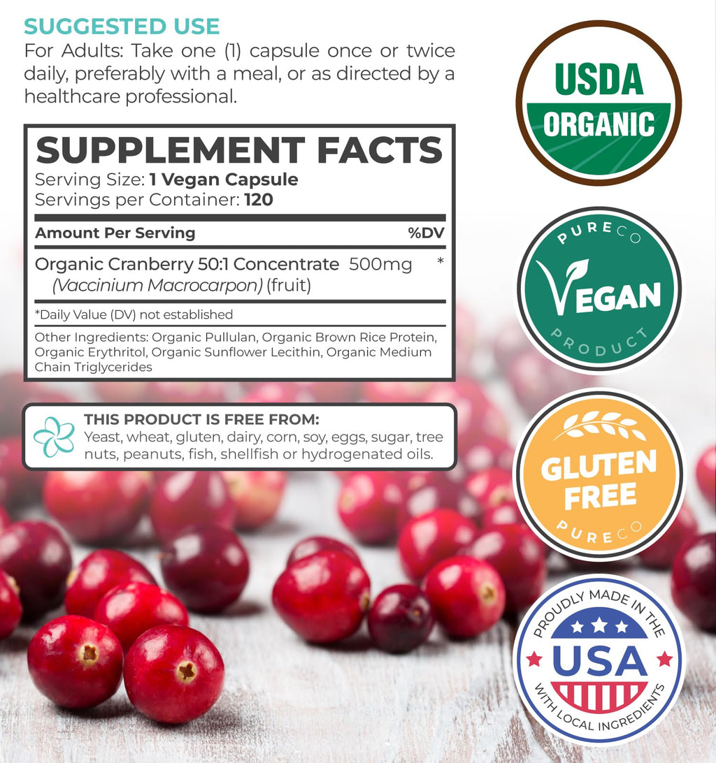 - Boost Yourself With A Berry Blast: When it comes to supplements, more isn’t always better; but when it comes to cranberries, your body can use as much as you can give it. That’s why we’ve crammed the equivalent of 25,000mg of fresh, organic cranberries into just one vegan capsule. Whether you’re going on a kidney cleanse or want to maintain a healthy urinary tract, try Pure Co Cranberry Pills.
