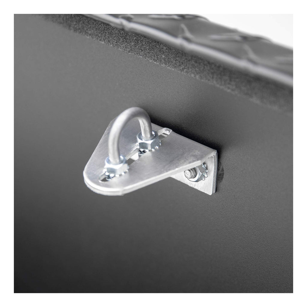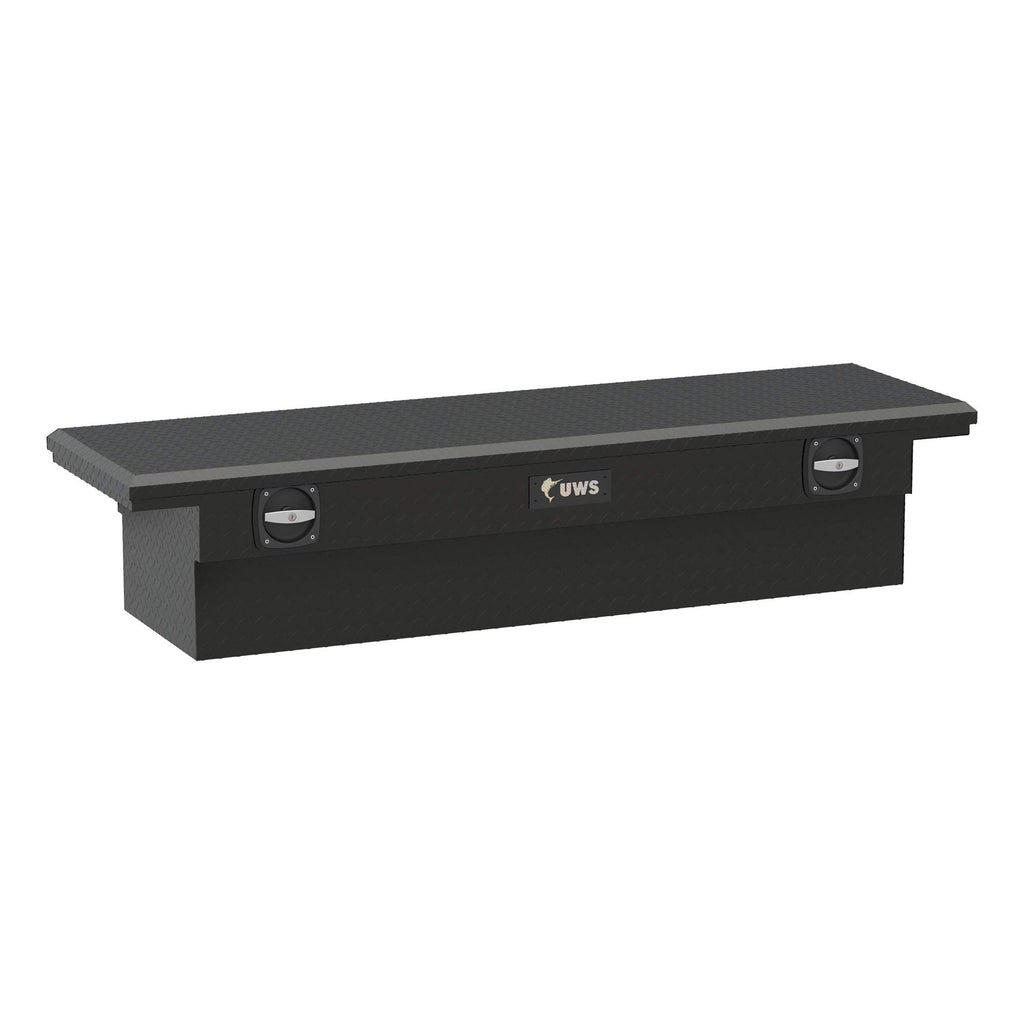 Details: UWS Secure Lock crossover truck tool boxes provide the ultimate in security and convenience, offering you a truck bed tool box unlike any other. It features a unique locking system, an innovative interior and a highly durable design. The Secure Lock truck box operates with two lockable twist handles. These handles are key-operated and allow you to lock the truck tool box from either the driver or passenger side. The two locks also give you the option to lock both sides for maximum security. The lid of the Secure Lock tool box is particularly strong, featuring our patented RigidCore foam-filled design. This gives the lid greater structural integrity and resists bending and warping. Like most UWS tool boxes, this box also features extra-thick aluminum construction, and the tub is welded into a single piece to ensure waterproof protection for your items. It is also equipped with a MicroSeal gasket to keep out dust, grime, moisture and insects. To protect the interior of the Secure Lock tool box, it features a heavy-duty BedRug liner. This protective mat resists dents and damage to the box itself and to your tools and other items, and it helps trap dust and dirt for easy cleanup. The UWS Secure Lock truck tool box offers excellent organization for your tools, featuring an included three-compartment tray and built-in screwdriver holders. The lid is able to open to a complete 90 degrees for easy access to the interior contents, and it is equipped with self-closing struts that automatically close the lid with a slight manual pull, securing the box when your hands are full. The Secure Lock truck tool box is quick and easy to install, and it is available in multiple sizes to provide the perfect fit for your own unique truck bed. Like all UWS products, each Secure Lock crossover truck tool box is proudly assembled right here in the USA for style and long-lasting dependability (NOTE: This product is heavily packaged for parcel shipping).