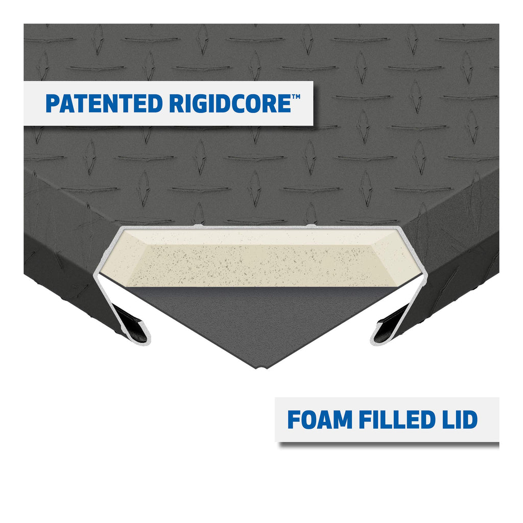 - RIGIDCORE LID. This truck bed tool box is built for max strength with RigidCore technology. The lid is filled with a solid foam that maximizes structural integrity and helps prevent binding. The low profile offers a better view out the rear cab window