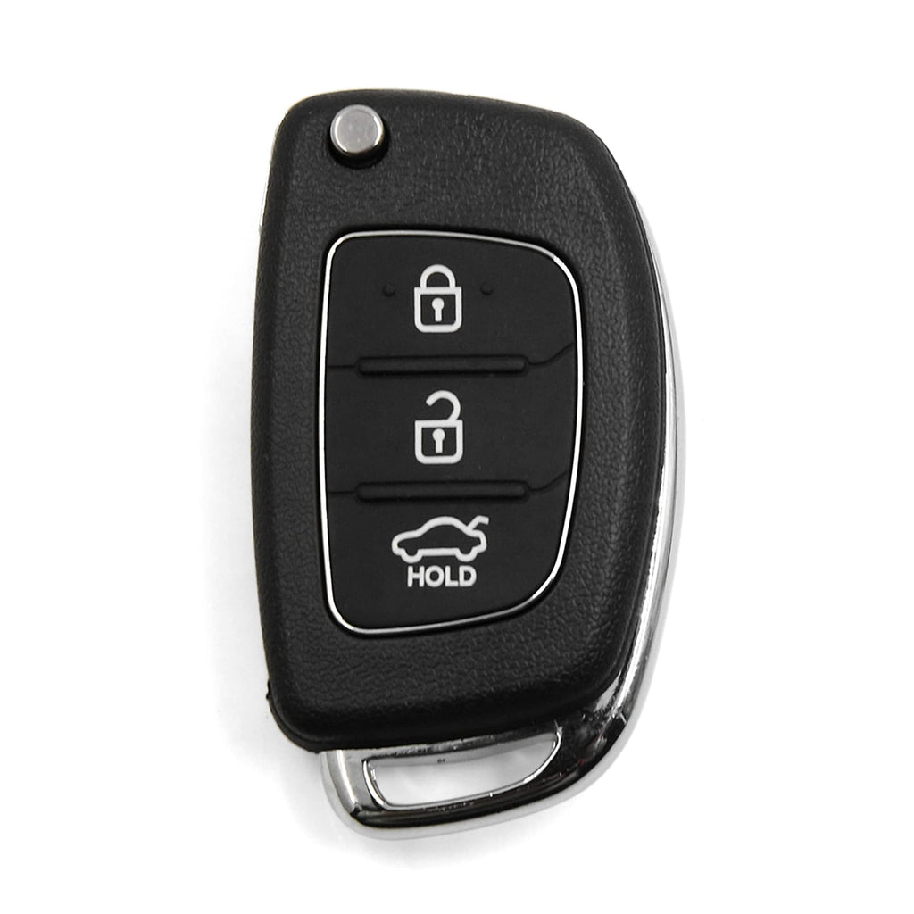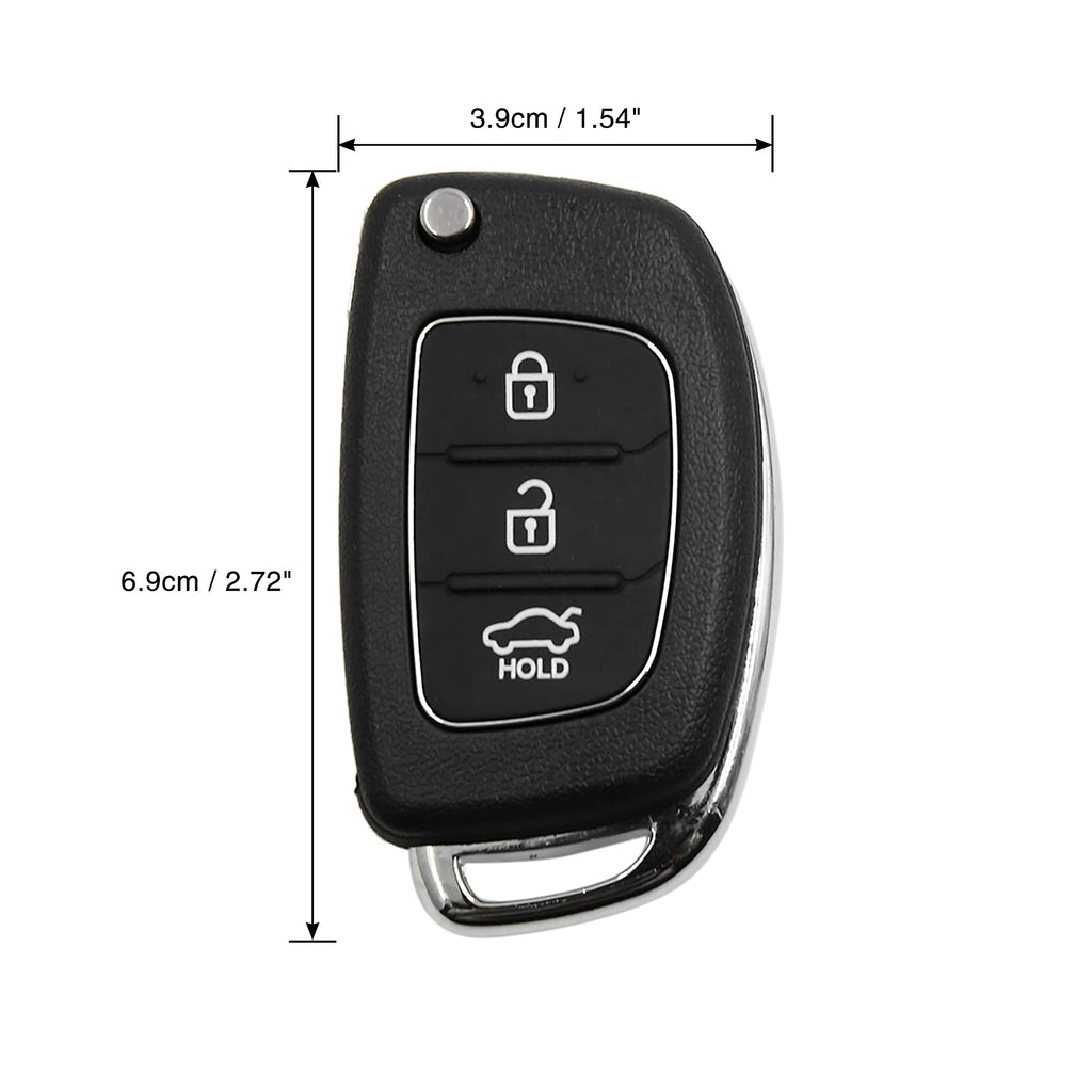 Details: Description: This is a 3 button remote key case with uncut key. A perfect replacement for a key with broken button case or worn key. Inner remote is not included in this auction. You can use your old. This remote case also does not come with any logos or Emblem. If you use your old remote then there is no programming require. Just get the key cut from you local locksmith. This is an after market replacement case. This is a non-OEM product, accessory only! Fitment:2013-2015 Hyundai Santa Fe2013-2015 Hyundai Accent Note: Key case and key only. No electronic internals Package included:1 x Key Shell