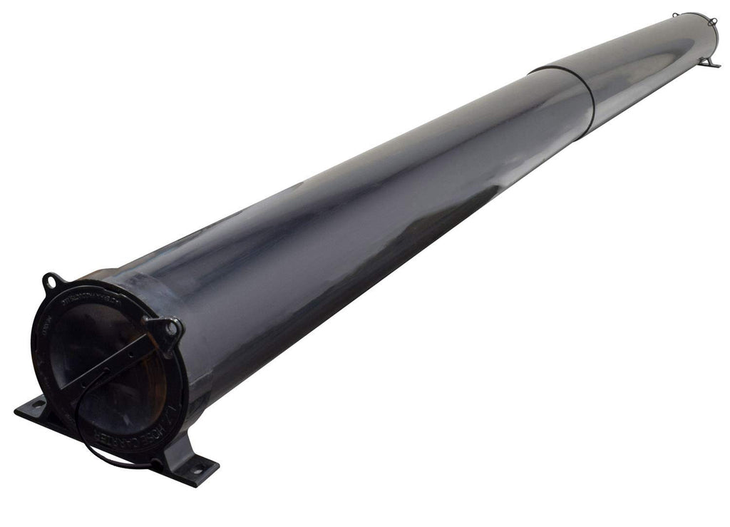 Details: Stop storing your sewer hoses in your compartments or bumpers. Try the EZ hose carrier from Valterra Products! Fits all 3" drain hoses and fittings with the exception of one-piece 90-degree sewer fittings. Inner diameter: 4.450". Comes assembled with mounting brackets for easy installation and includes self-tapping screws. Easily adjustable to adapt to the best mounting location and hose size! Comes with quarter-turn twist lock caps with straps. Both caps are vented to prevent moisture from building up in the carrier. Each cap has a loop that you can add a padlock to for extra security. Works great, especially if you're storing your expensive fishing poles (store without reels attached)!!