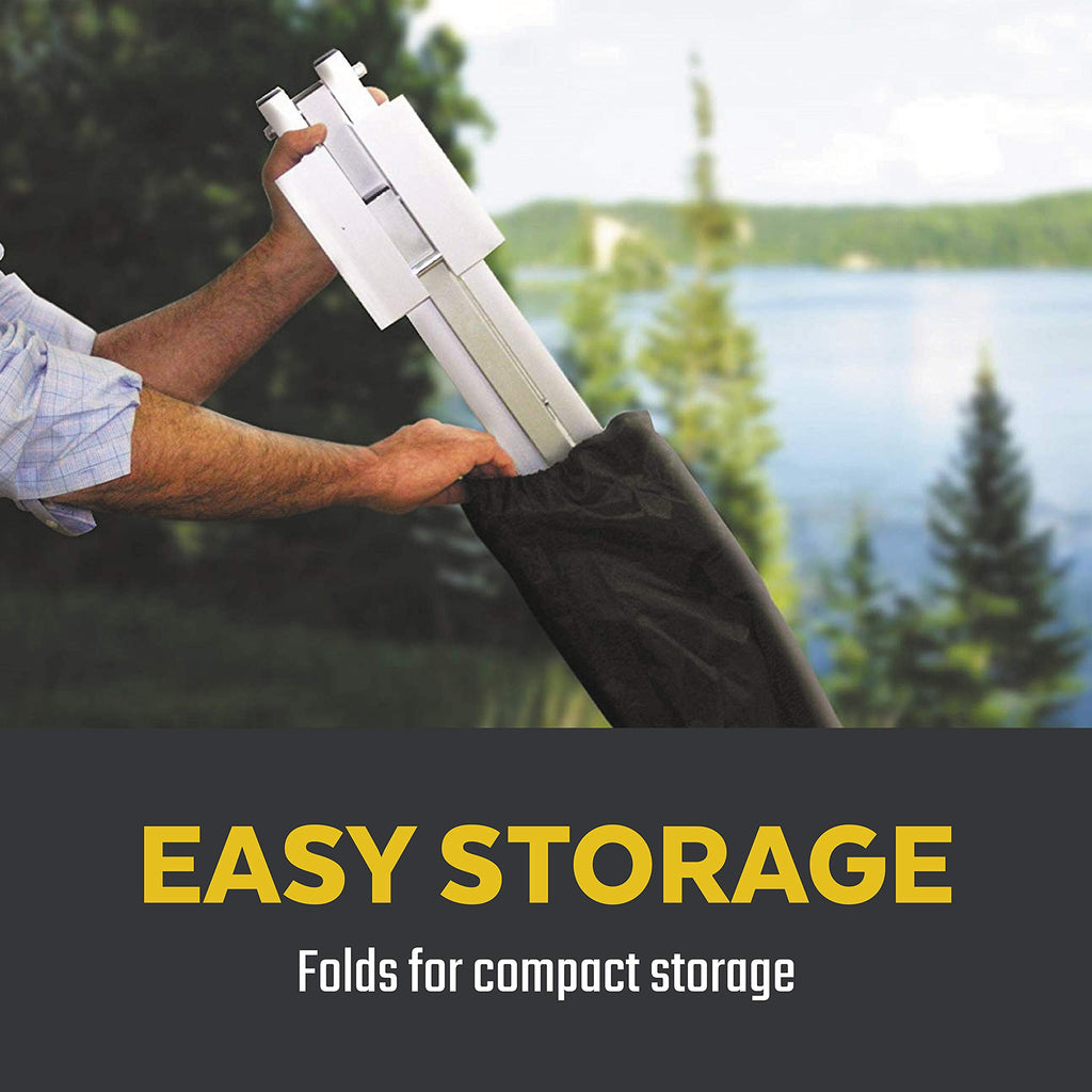 Details: Rv Stabilizer The Easy Way to Stop the Sway! Eliminate wobble when stepping into your RV. Sets up in minutes with No Tools Required! Just unfold, adjust with the push of a button, and ratchet into place. Place one next to entrance step, then purchase a second stabilizer for bumper placement. Easily folds for storage – bag included! Adjustable to fit 14 inch to 28 inch frame to ground Works with 5th wheels, class 'C' motor homes, toy haulers, travel trailers and utility trailers