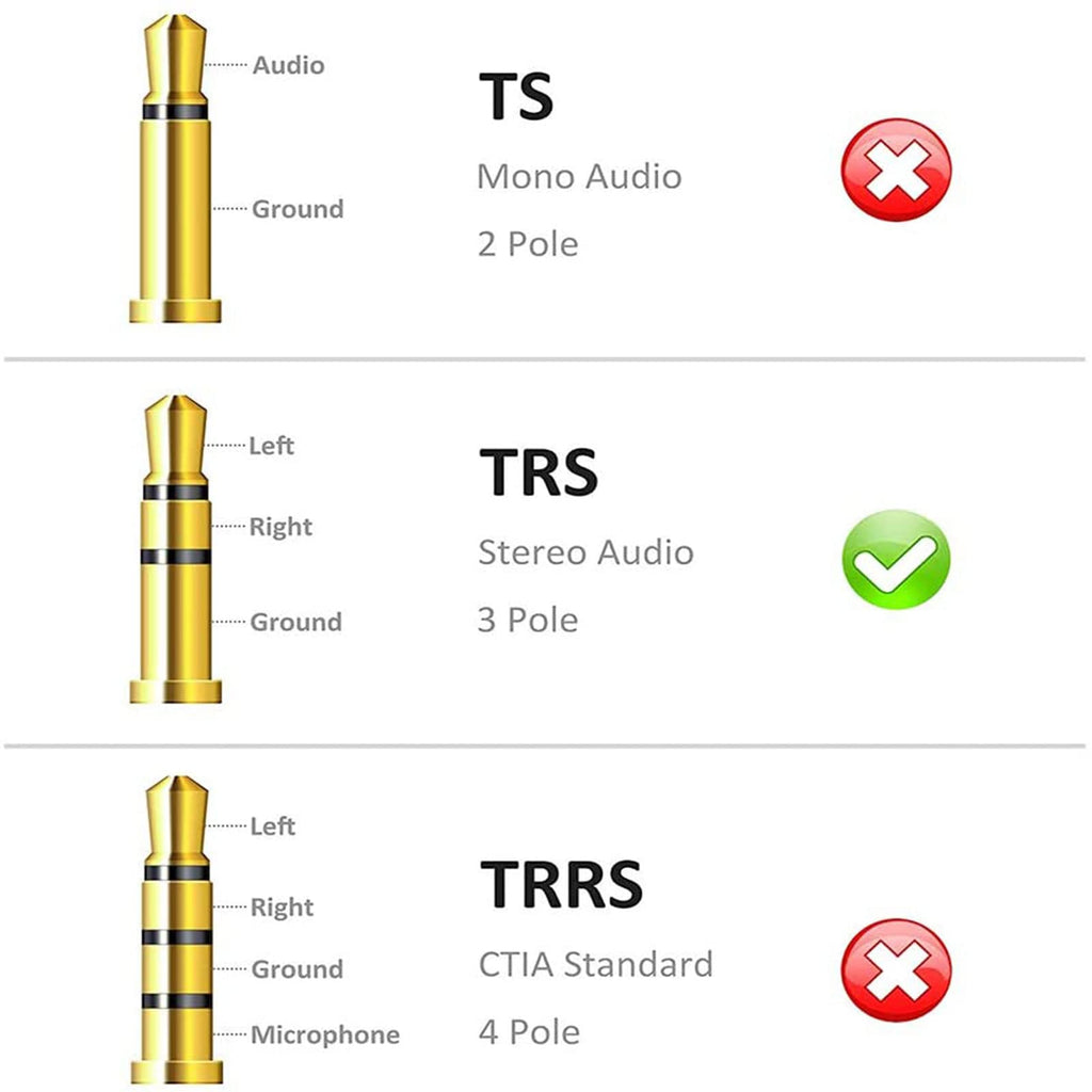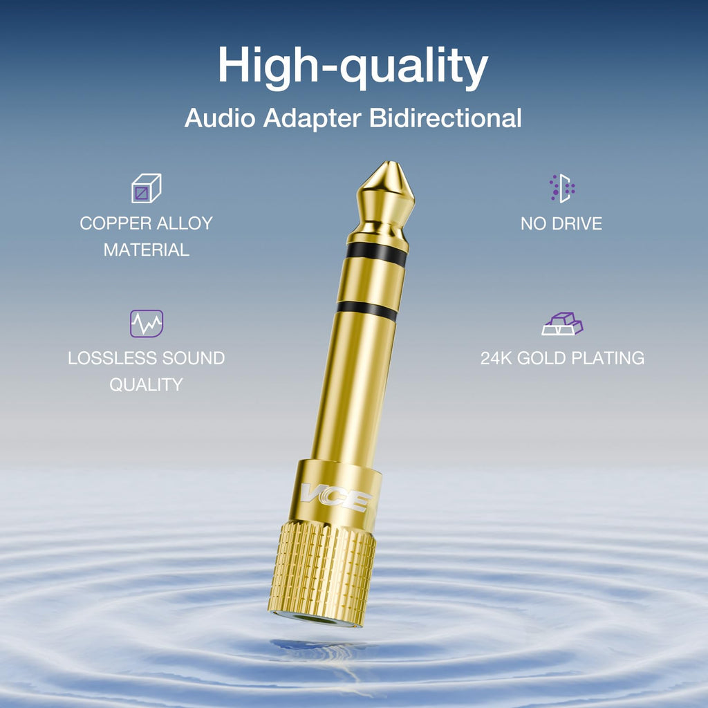 - 1/4'' to 3.5mm Audio Jack Adapters allow a 6.35mm stereo port to connect a 3.5mm plug aux cable