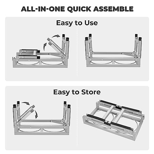 - Super Sturdy Metal Elevated Dog Bowls Stand Offers Unbeatable Durability. Made with premium rustless metal material and powder-coated steel, our raised dog bowls is much stronger and durable than other ABS plastic bowl stand. Built with anti-collapse fixing design and non-slip rubber feet to lock the dog bowl in place even during wild feeding moments.
