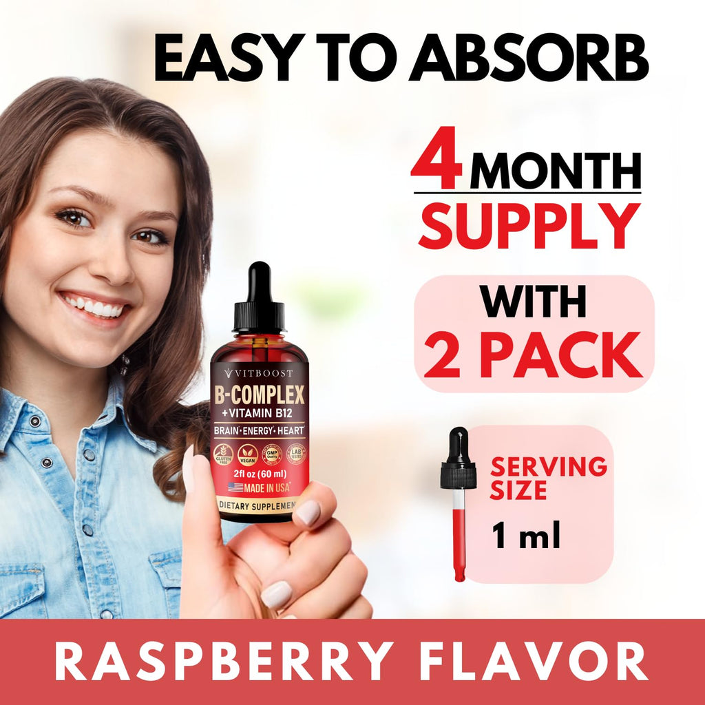 - Advanced Vitamin B Complex for maximum absorportion – Fortified with all 8 essential B vitamins including B1, B2, B3, B5, B6, B7, B9, and methyl B12 liquid vitamins (B 12). This sublingual liquid B complex vitamin supplement for women & men help nourishes your brain, cardiovascular system (heart), and immune defense.