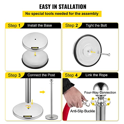 - Easy Installation: There are four adapters at the top of each stanchion post for velvet rope to connect. Furthermore, each rope has hooks at both ends to allow you to attach the rope to the pillars easily and quickly. You don't need to use other auxiliary tools, and you can set it up in a few minutes.