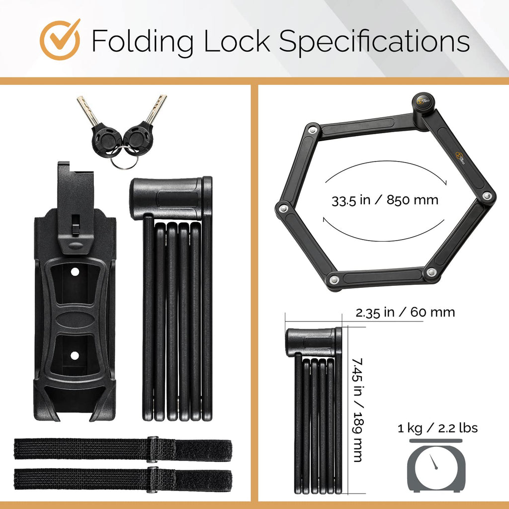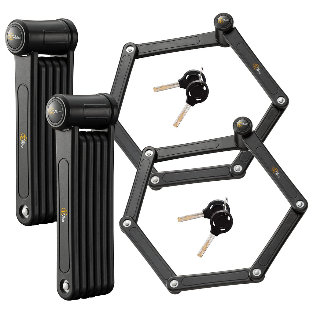 - 2-IN-1 BIKE FOLDING LOCK SET: This set comes with (1) 2PCS 33.5”HRC55 Steel Folding Lock; (2) 4 keys Same Keyed alike