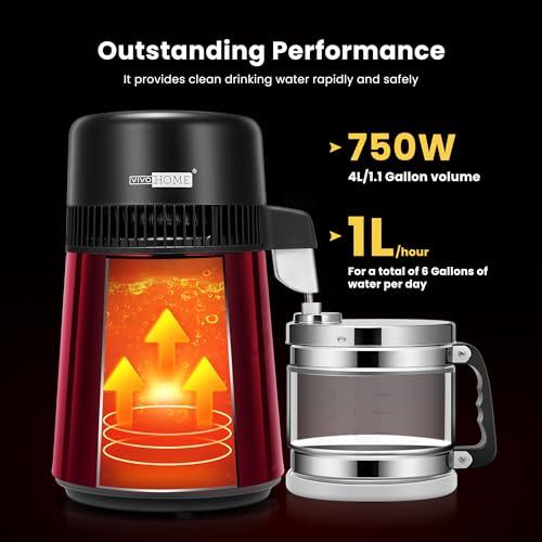 - DURABLE MATERIAL SMART DESIGN - This VIVOHOME distilled water machine is made of premium food-grade 304 stainless-steel and BPA-free plastic material, which is durable and leak-resistant; Interior components are of the highest quality; Designed with an extra waterproof ON/OFF smart switch on the shell of this electric water distiller so that you can leave for a while during distillation, it is safer and convenient