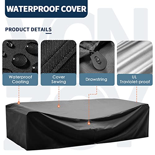 - Easy Assembly, Waterproof Cover Included: VONZOY patio conversation set includes 4 middle chairs, 2 corner chairs and 1 tempered glass table, 10 seat fix buckle, 100% waterproof wrap sofa cover, necessary tools and hardware. Please do not tighten the screws until you align all the holes of the wicker sofa