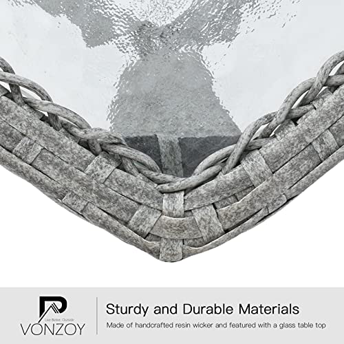 - 【Sturdy and Tough】 - The patio rocking chair is handcrafted from PE wicker, tested for 1000 hours of UV resistance. Each hand-knitted piece is of superior quality, ensuring strength and resilience with great flexibility. The tempered glass table guarantees durability and is easy to clean with a damp cloth.