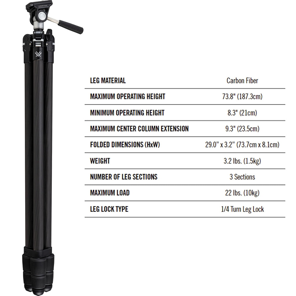 Details: With a tripod to match every application, the new lineup from Vortex takes your optical experience to new heights. Keep your packout light in the backcountry, mount your optics up high with total confidence, and trust your gear and your outdoor pursuits to a tripod built for your needs.