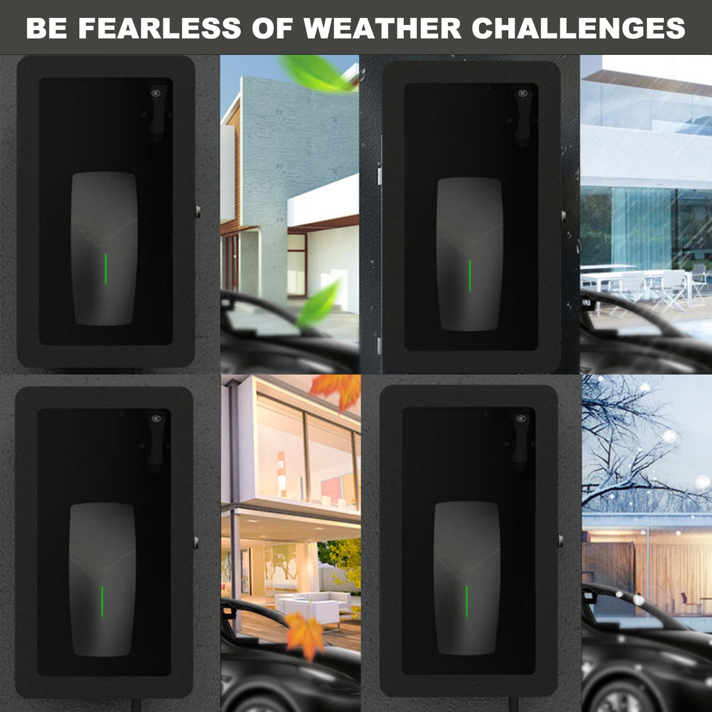 - 【HEAT DISSIPATION】There are multiple ventilation holes on the bottom and sides to protect the charger from heat. The side heat dissipation vents are roof-like, which can ventilate and proof rain.