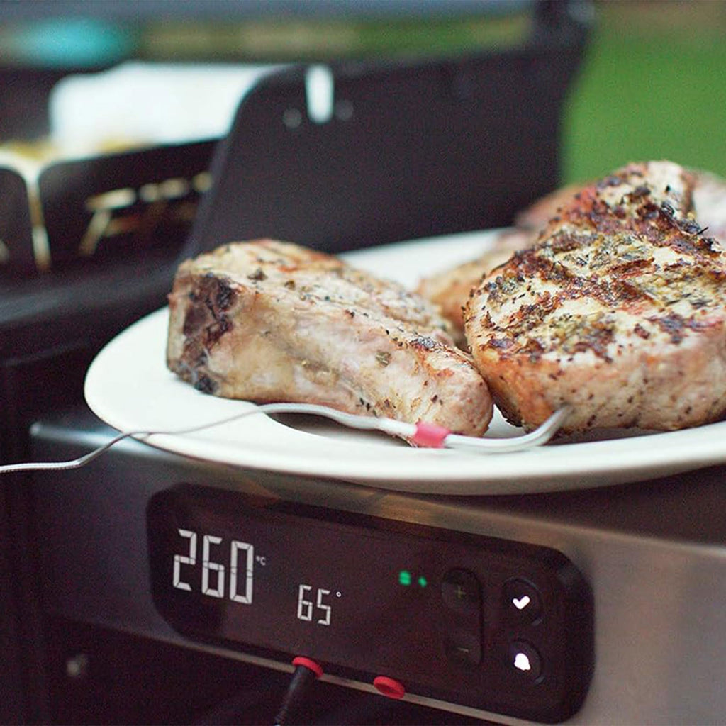 - Digital, real-time food temp & readiness countdowns on your phone and grill