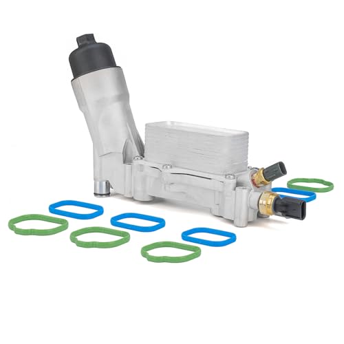 - 【Excellent Design】: The old plastic housing can't handle the heat and will warp over time causing leaks which will give you trouble. This oil cooler is expertly designed and constructed of reinforced solid aluminum to ensure excellent corrosion resistance and excellent heat resistance for a long practical life. As an upgrade to the plastic version, this will minus your frequent leaks and tedious replacements, designed to give you long-term stability and excellent performance